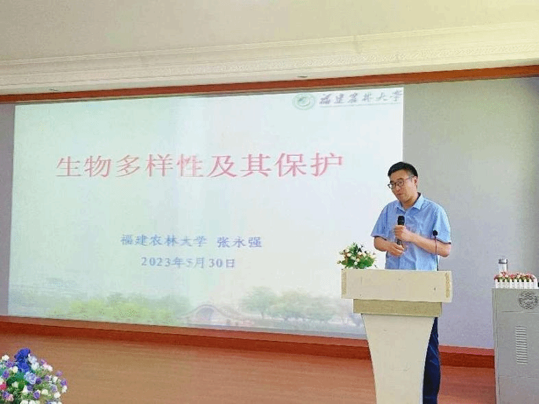 为普及生物多样性相关专业知识,倡导人与自然和谐共处的理念,2023年5月30日,福建农林大学张永强副教授应邀莅校,于外语体验中心开展“生物多样性及其保护”主题讲座。此次讲座面向学院全体师生。