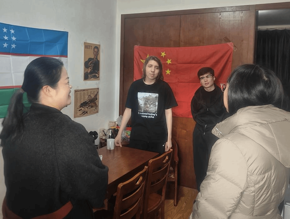 学院领导走进留学生宿舍,关切询问留学生们在校的学习、生活情况,倾听他们的想法和需求,并予以耐心的解答与指导。学院领导们特别提醒近期气温变化频繁、春季呼吸道疾病高发,同学们要注意开窗通风、加强锻炼,做好个人健康防护。