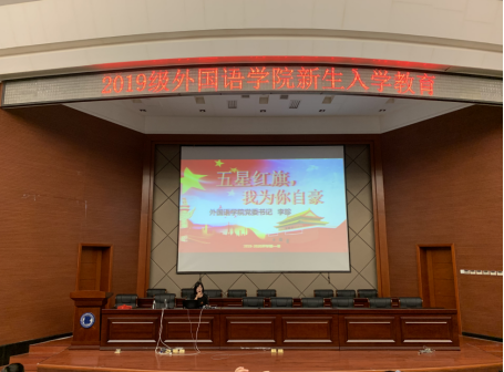 金秋九月,我们beat365中文官方网站迎来了2019级新生。学院党委书记李珍在马尾校区学术报告厅为新生上主题为“五星红旗,我为你自豪”的第一课。学院分团委副书记翁云星老师、学生第一党支部书记陈小红老师、学生第二党支部书记张丹丹老师、新生辅导员杜吴明老师,以及2019级全体新生参加了此次活动。