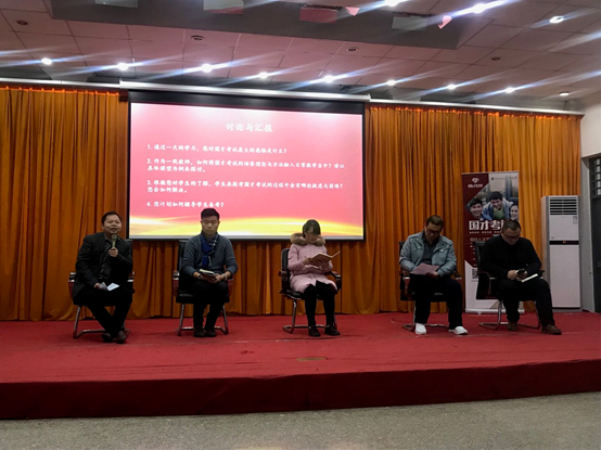 本次培训会上,与会教师听取了马应心教授《新考试新举措助推新人才》、 冯捷蕴教授 《“国才高级”考试内容与任务解析 》及韩冰老师《国才考试初级和中级解析》等讲座,共同探讨新形势下如何在外语教学中培养具有中国情怀、国际视野的国际人才;如何让国际人才金课更好地融入大学英语课程体系,丰富大学英语课程的建设内涵;如何让国际人才金课更好地支撑英语专业的实践环节,完善英语专业的人才培养体系。会议期间,通过分享交流、小组讨论等环节,专家同参会教师们对国际人才培养课程的开设、国际人才培养师资队伍的建设、国际人才测评理念、国才考试设计及各项任务分析和国才考试与教学结合等方面进行了互动,深入探讨,与会教师获益匪浅。饶卫忠老师受邀作为嘉宾参加讨论与汇报环节,各抒己见,畅所欲言。通过这次培训会议,教师们更开拓了今后英语教学改革的新思路,将促进英语教学更上一层楼。