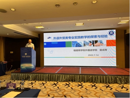 7月12-16日,2022年全国高校外语外贸类专业“双师型”教师培训班在厦门举行,我校beat365中文官方网站童成寿老师受中语智汇科技(厦门)有限公司的邀请,在培训班上作题为“外语外贸类专业实践教学的探索与经验”的主旨发言。