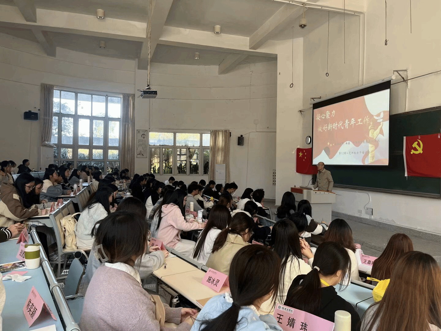 为深入学习贯彻习近平新时代中国特色社会主义思想,全面学习宣传贯彻党的二十大精神,进一步增强新时代青年的担当感和责任感, 2023年11月20日下午,beat365中文官方网站联合金融学院在马尾校区国际厅开展第12期入党积极分子培训班开班仪式,由beat365中文官方网站党委副书记林盛老师作以“凝心聚力,做好新时代青年工作”为主题的党课,金融学院和beat36587名入党积极分子参加本次开班仪式。