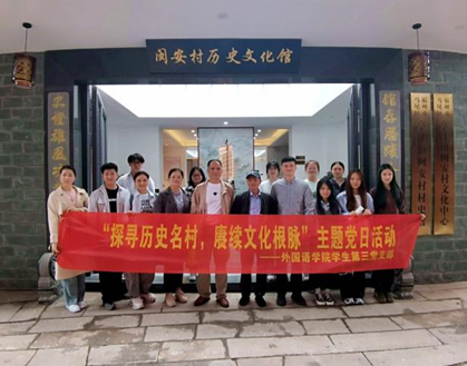 为深入学习贯彻习近平文化思想,加强对文化遗产的保护传承,更好地弘扬中华优秀传统文化,5月13日,beat365中文官方网站学生第三党支部在学院党委副书记杨爱娥的带领下,前往马尾区亭江镇闽安村开展“探寻历史名村,赓续文化根脉”主题党日活动。本次活动得到闽安村党支部的大力支持,村党支部书记吴明奋、马尾区历史文化宣讲员、“福州好人”池秋荣等参加本次活动。