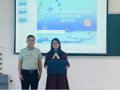 校党委副书记吴访益为一等奖获得者颁奖,吴访益副书记指出,党务干部职业能力竞赛不仅是学习形式的一种拓展,更是通过比赛的组织过程,展现出了beat365中文官方网站党委的新气象、新风貌。他希望全院广大党员,要继续加强学习和交流,主动增强创先争优意识,把学习成果和参赛热情转化为工作动力,努力在各自岗位上有效掌握新方法、增长新才干、解决新问题,让本职工作更加高质高效,为学校高质量发展不断贡献力量。读书社要围绕学习贯彻党的二十大精神这条主线,带领学生认真学习习近平新时代中国特色社会主义思想,助力青年学生在青春的赛道上跑出当代青年最好的成绩。