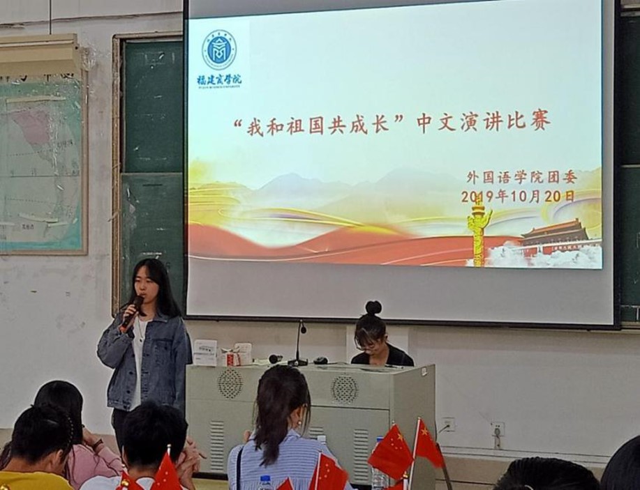 2019年是中华人民共和国成立的70周年,为进一步培养学生家国情怀,激发爱国热情,2019年10月20日,beat365中文官方网站于世界厅举办“我和我的祖国共成长”中文演讲比赛。共计13名选手参与本次比赛。