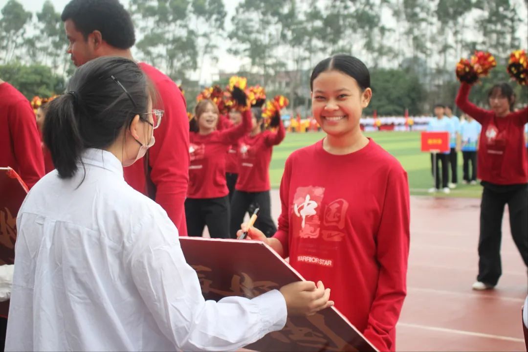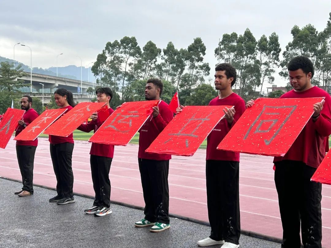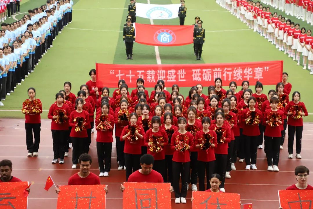beat365中文官方网站代表队带着蓬勃朝气与昂扬锐气,刚劲稳健地踏步入场,他们用语言架桥,以文化传情,与来自乌兹别克斯坦,老挝,新几内亚岛,萨摩亚,基里巴斯,斐济,所罗门群岛的九名留学生携手前行。他们以活力与热情诠释运动魅力,以喜悦与深情庆祝祖国生日,共同演绎歌曲《美丽中国》,用青年学子舞动青春的热情与生机为伟大祖国75周年华诞献礼。留学生们热情洋溢,手执毛笔,书写“人类命运共同体”,更彰显了中国与世界共绘一幅幅多元对话的人文交流图景的坚定承诺。