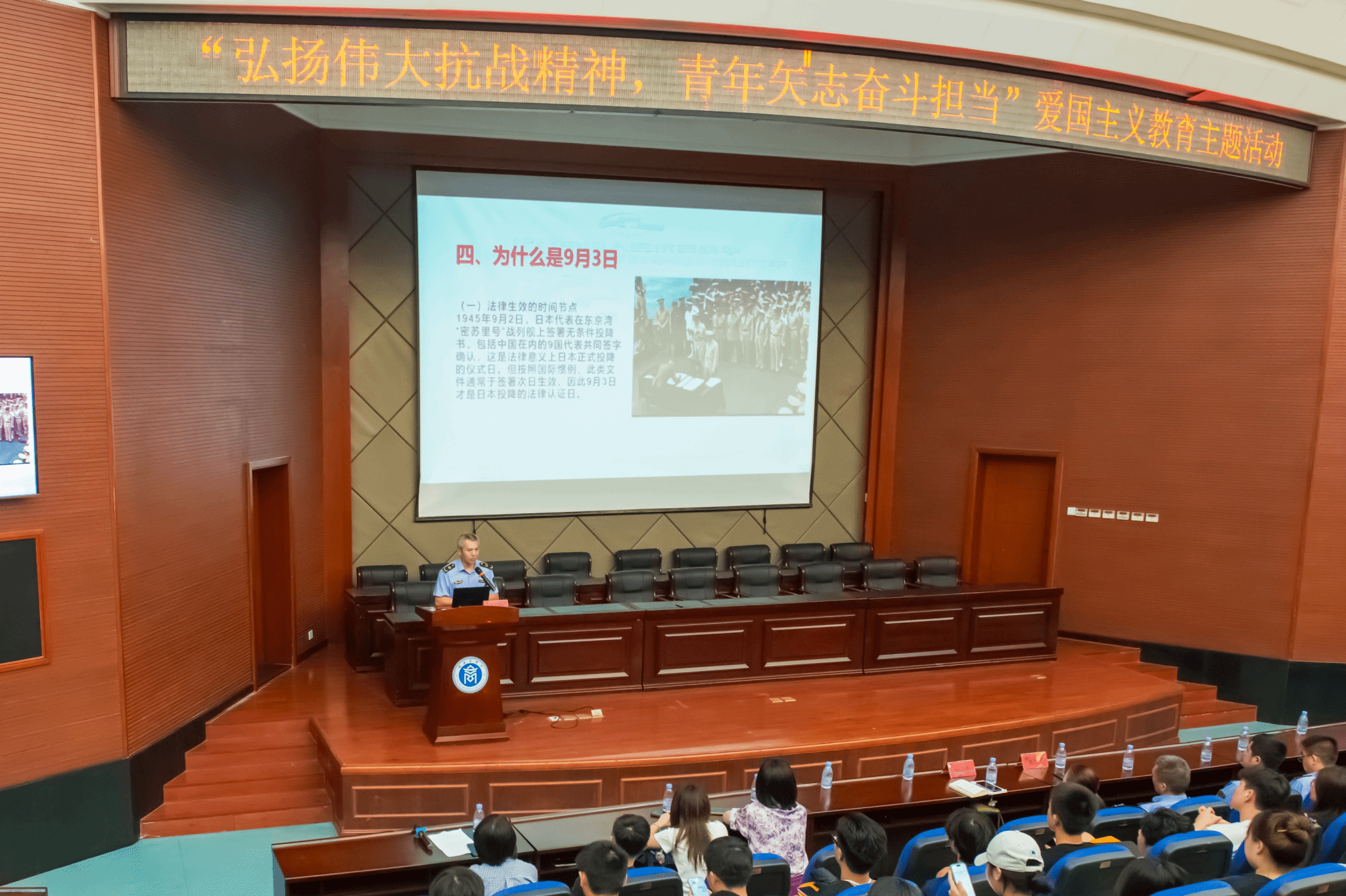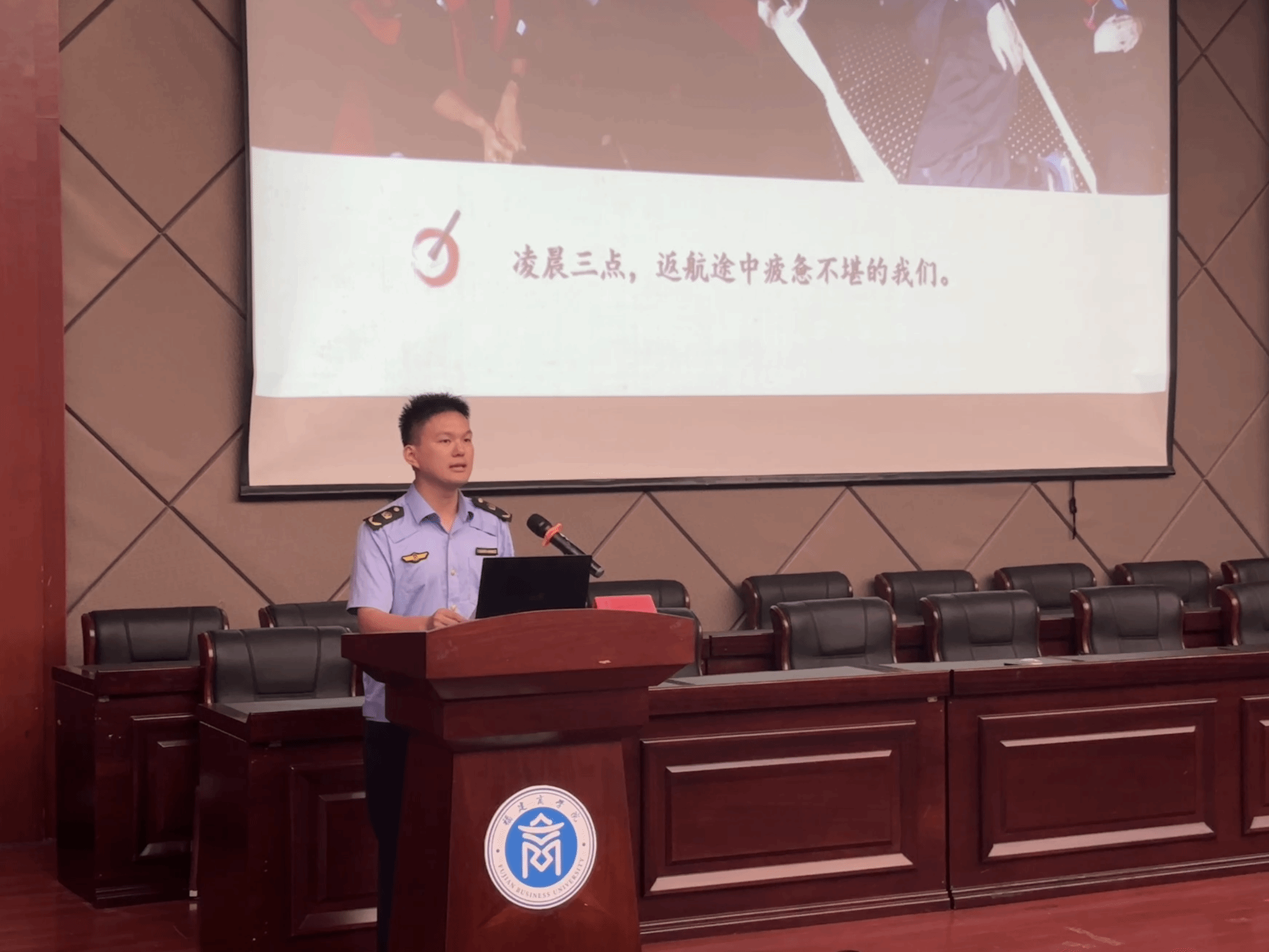 邱卫华同志作为福建省及海上执法系统的唯一代表,获邀现场观礼纪念中国人民抗日战争暨世界反法西斯战争胜利80周年大会阅兵仪式。在讲座过程中,他认真梳理复盘了观礼前的各项严谨、细致准备工作,深度分享了在天安门广场现场观礼时的震撼感受。他说,本次大阅兵展现了我们国家伟大的创造力、展现了中国人民伟大的向心力和凝聚力,同学们要感恩生逢盛世,认真学习,以昂扬姿态奔赴未来征程。