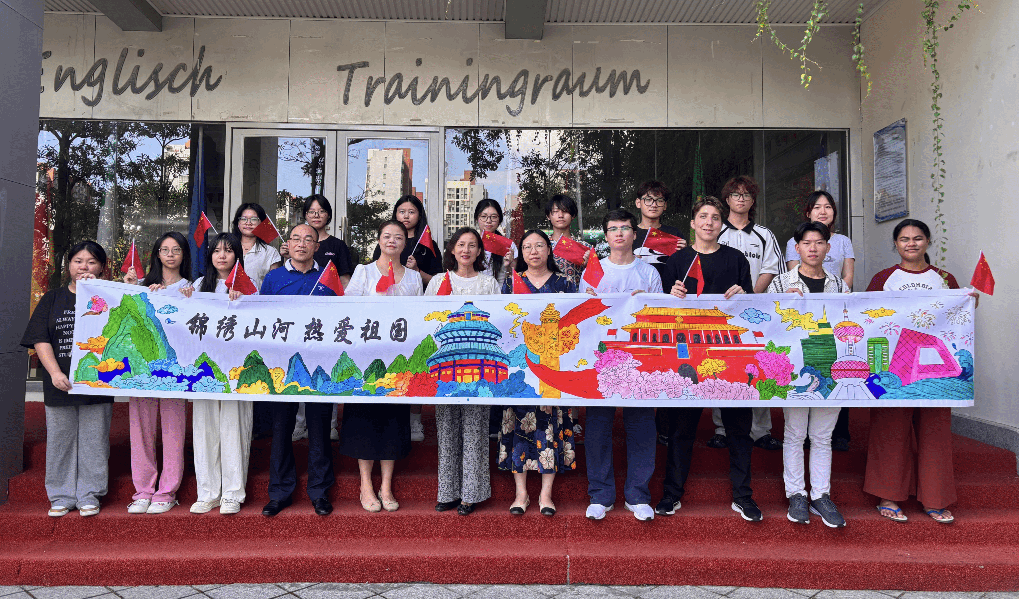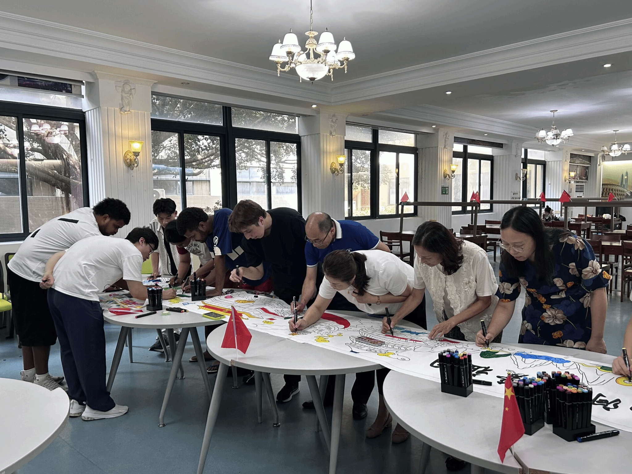 为庆祝中华人民共和国成立76周年,厚植外院学子的爱国情怀与家国担当,在中外交流讲好中国故事、传播中国声音,9月28日,beat365中文官方网站于外语体验活动中心举办“执青春之笔,共绘千秋华章”主题画卷共创活动,学院党政班子成员、学生代表及留学生共同参与,执笔共绘多彩画卷。