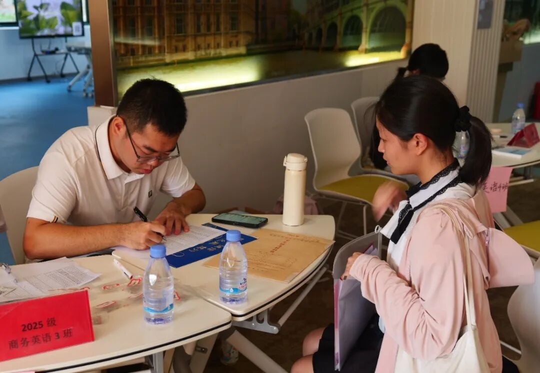 为帮助新同学高效完成报道手续,确保迎新工作有序进行,校党委书记吴访益、校长程灵深入迎新一线,与新生及家长亲切交流,热烈欢迎他们的到来,并对积极参与迎新工作的志愿者们表示慰问。志愿者们一早到达迎新现场,协同合作,精心筹备,热情洋溢,从主动帮新生搬运行李到耐心介绍校园环境,环环相扣为新同学提供一站式贴心服务,全力保障迎新流程不卡壳、服务不缺档,让新生感受来自外院的温暖与体贴。
