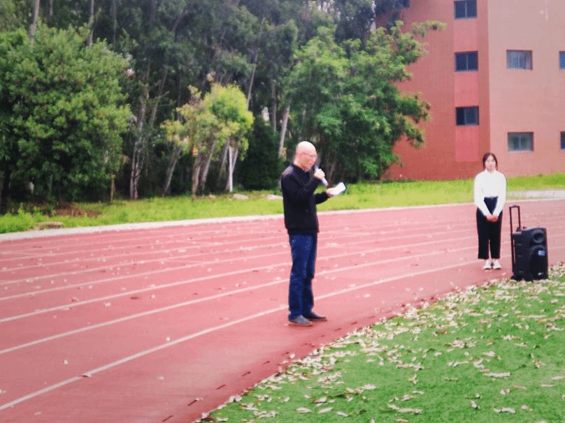 7时15分,升旗仪式正式开始。在全体师生的注目礼下,英姿飒爽的国旗护卫队队员们护送鲜艳的五星红旗进场,行礼完毕,伴随着庄严的中华人民共和国国歌,五星红旗冉冉升起,迎风飘扬。在场师生向国旗行注目礼,深怀对祖国无限的热爱和崇高的敬意。国旗下,院党委副书记林盛老师结合习近平总书记与青年学生的谈话内容,对同学们予以勉励,寄以殷切期望。“清澈的爱,只为中国”,学生代表叶贞志同学通过讲述陈祥榕烈士的故事,激励同学们积极奉献,充实自己,发展自我。老师的谆谆教导、同学的号召鼓舞,使在场的师生接受了一次思想教育和精神洗礼。